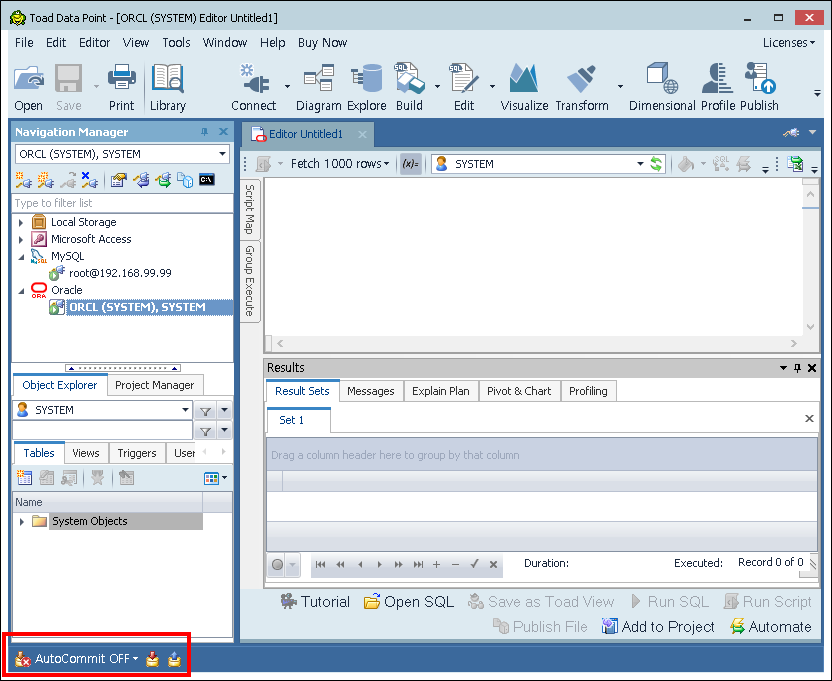 참고로 Toad Data Point에서는 Oracle은 AutoCommit이 기본적으로 비활성화되어 있고